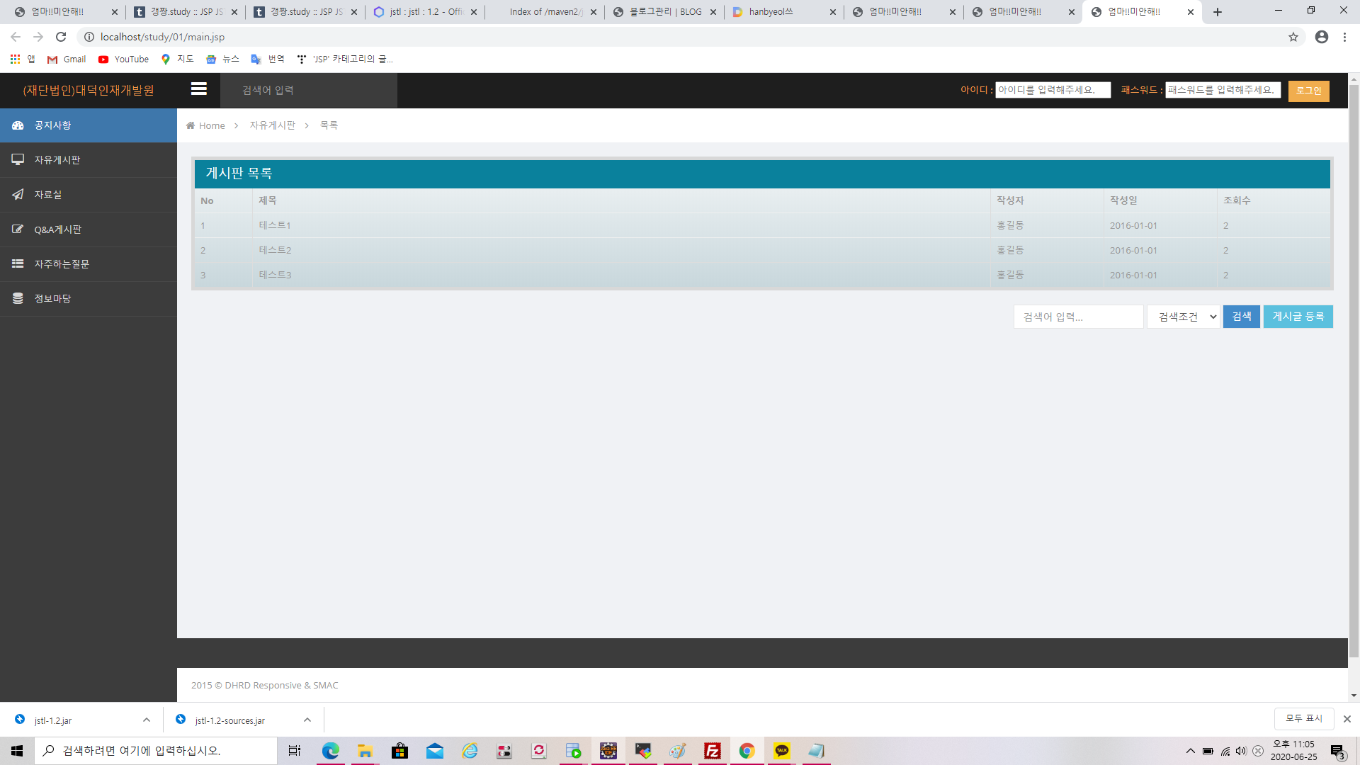 이러한 html 파일을 jstl을 이용해서 코딩해보자!